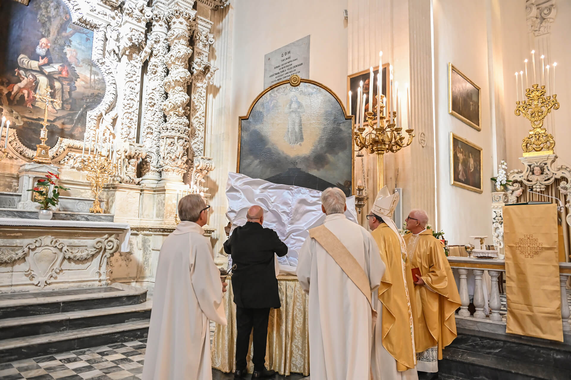 Consegna di un dipinto restaurato raffigurante la “Morte della Vergine Maria e la sua Assunzione al cielo”